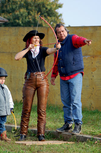 Wer diesen Trail in angemessener Zeit ohne Verweigerung geschafft hatte, durfte anschließend noch drei Mal mit Pfeil und Bogen auf die Gespensterburg schießen. Man sollte dabei möglichst die dort aufgestellen Figuren treffen.