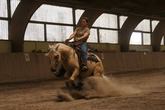 Doch wieder einmal erwieß sich Sita Steppers äußerst pferdefreundliche Ausbildungsmethode und ihr guter Draht zu Starlight als ausgesprochen effektiv. Obwohl der junge Hengst noch nie in solch einer Arena gewesen war und auch Zuhause gar keine Box kennt, verhielt er sich während der gesamten Woche absolut vorbildlich und fiel der Fachwelt nicht nur durch sein immenses Potential in der Reining, sondern auch durch seine Nervenstärke und seinen freundlichen Charakter auf.
