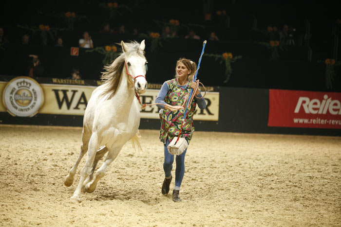 Neue Maßstäbe setzte die diesjährige HOP TOP Show „Cavaluna“, die mit einer atemberaubenden Inszenierung die Welt der Pferde in die Welt der Sterne, Monde und Planeten transportierte. Beeindruckende Showelemente, reiterliches Können in Perfektion inmitten einer ungewöhnlichen Kulisse zogen mehr als 20.000 Besucher an vier Abenden in ihren Bann und lösten Begeisterungsstürme aus. Das bereitete auch Heike Kemmer und Isabell Werth sichtbare Freude: „Es war mir ein unbeschreibliches Vergnügen vor jeweils über 5.000 Zuschauern in der HOP TOP Show mein Pferd und mich präsentieren zu können. Ich bin sehr gerne wieder zur EQUITANA gekommen“, so die erfolgreichste Dressurreiterin aller Zeiten, Isabell Werth, die zum krönenden Abschluss der HOP TOP Show eine Grand-Prix Kür ritt.