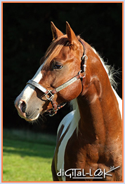 Farbe: Sorrel/Tobiano geb. 2001 - Stm. 1,50 m Vater: Little Peppy Olena v. Delta Olena a.d. Little Peppys Sal Mutter: Justa Little Dip v. Peppys Dry Doc a.d. Dip O'Snuff