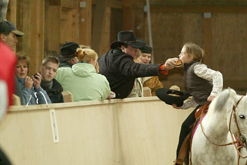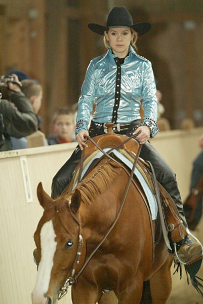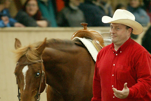 So stellte Birgit Schmitt-Paeslack ihre Quarter Horse Stute The Ole China Sky in der Showmanship at Halter vor. Bernd Enders punktete mit Paul Bee Imperial bei der Jackpot Reining, bei der Reining und beim Cutting an der Maschine. Auch Manfred Kröll, der während der ganzen Veranstaltung durch´s Programm führte, sattelte für das Cutting seinen Quarter Horse Wallach Taris Flasher. Das ließ sich der Vorstand der NRHA Regionalgruppe Südwest nicht nehmen. Der 2. Vorsitzende Achim Klein mit Doc Tom Commander landete, wie sollte es auch anders sein, bei beiden Reining-Prüfungen auf dem ersten Platz.