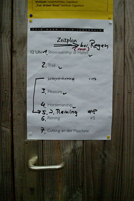 Zwei Tage vor dem Paid Warm Up hieß es noch, dass der Frühling mit Sicherheit noch bis zum Wochenende bei uns eintreffen werde. Aber sicher überall in Deutschland - nur eben nicht in Jugenheim. Stattdessen nieselte es den ganzen Vormittag und der Reitplatz zeigte sich besonders sumpfig. Doch wozu hat es in Jugenheim eine geräumige Reithalle mit Extra-Zuschauer-Gangway. Man rückte ein wenig zusammen und das machte die ganze Veranstaltung noch viel familiärer.