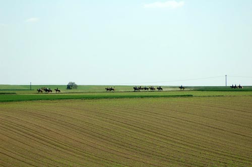Die nächste Etappe führte nach Hangen-Walheim zu einer weiteren Rast mit Wein und einem kleinen Quiz. Dann ging der Weg weiter zum Weingut Schauf in Guntersblum, wo eine fürstliche Tafel mit Speisen und Getränken auf die Reiter wartete. Auch die Pferde hatten nun eine Pause verdient und sie konnten sich auf saftigen Wiesen bestens erholen.
