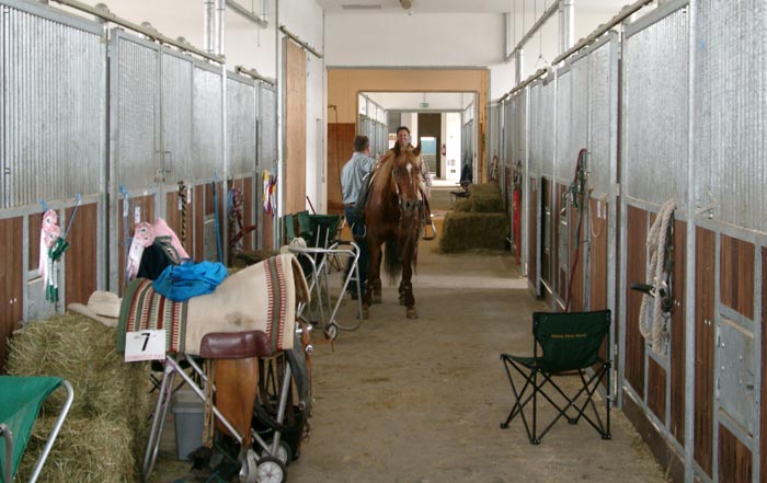 Tolle Pferde in Topform, manche sogar zum ersten Mal in den „heiligen“ Hallen von Kreuth. Maik Bartmann eritt mit Snapper Smart Spirit gleich zwei Mal den ersten Platz in der Working Cowhorse (Show 1 u. 2). Dabei stellte er Gerold Dautzenberg lässig in den Schatten. Aber auch in der Junior Reining war das Pferd von Sandra Georg ganz vorne mit dabei (Platz 2 in Show 3 u. 4). Mit FR Smart Hickolena (Bes. Gun Persson) erreichte er in der Senior Reining einmal den 1. Platz (Show 3) und einmal den 3. Platz (Show 4) und auch mit RS Little Jac Flash (Bes. Christian Wolf) platzierte er sich in der Senior Reining Open auf den 3. Platz. Ein tolles Ergebniss für den Osthofener und natürlich auch für seine Kunden. Oliver Wehnes reiste mit 2 Pferden nach Kreuth. Zum einen hatte er seinen Stammhengst Smart Top Enterprise von Marco u. Nadine Dexler dabei. Smartie musste sich anscheinend erst einmal richtig warm machen. So erreichten die beiden in Show 1 den 4. Platz und in Show 2 nur den 7. Platz. Dann aber, mit der richtigen Betriebstemperatur schafften sie den 2. Platz in Show 3 und zum Schluss noch den 1. Platz in der letzen Prüfung. Manche brauchen zum Warmwerden etwas länger. Star Leo San Badger, „ Bestes Jungpferd 2006 „ im Besitz von Hans Bauer zeigte hier erneut seine Vielseitigkeit. Sowohl in der Reining als auch im Trail kann man mit seinen Leistungen mehr als zufrieden sein. 2 x den 3. Platz im Junior Trail Open (Show 3 + 4) und den 4. u. 6. Platz in der Reining (Show 3).