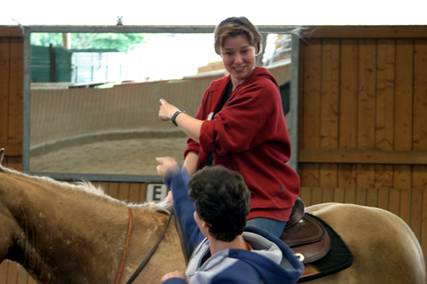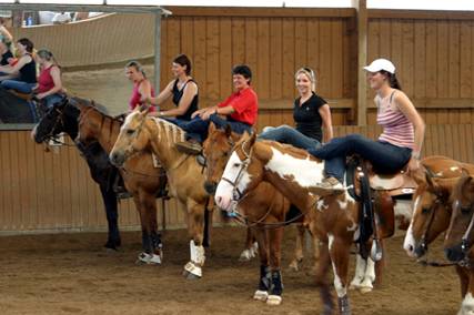 Waren vormittags noch alle Teilnehmer gemeinsam in der Halle, wurden für den Nachmittag zwei Gruppen mit je fünf Pferd-Reiter-Paaren gebildet. Die Gruppen waren recht homogen zusammengesetzt, so dass alle Reiter auf ihre Kosten kamen. Im Vordergrund stand - wie bei Chucks Kursen üblich - das Vorbereiten und Auf-den-Punkt-Reiten der Pferde. Manöver blieben vorerst Nebensache, denn wer sein Pferd nicht an der Basis arbeiten und jeden einzelnen Schritt kontrollieren kann, braucht mit diesen gar nicht erst zu beginnen. Mag mancher Reiner nun denken „das ist nichts für mich, ich kann das ja schon alles“, der sollte sich wirklich einmal einen Kurs von Chuck ansehen oder mitreiten. Ramona Hammer, die als erfolgreiche Turnierreiterin selbst mit von der Partie war, war sehr angetan von der Clinic, von dem Programm, von Chuck als Trainer und Mensch und meinte anschließend, sie hätte etwas verpasst, wenn sie nicht mitgeritten wäre. Die Kursteilnehmer hoffen ebenfalls, dass Ramona ihre Anlage bald wieder für einen Kurs zur Verfügung stellt.