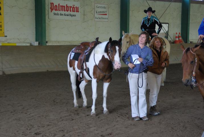 Der Freitag beginnt bereits um 7 Uhr – wobei es heute mit dem Aufstehen leichter ist. Das Wetter hat sich schon gebessert und das hebt auch die Stimmung in der Crew. Die Jungpferde Reining steht auf dem Programm. Leo hat sich schon besser eingelebt und das merkt man dann auch in der Arena. Oliver Wehnes reitet ihn auf den zweiten Platz. Auch Bobbie schafft es auf den 8. Platz und kann sich somit Hoffungen auf die German Open in Kassel machen. Und Zwischendurch darf das Abreiten nicht vergessen werden – das geht schon mal zu Lasten des Mittagessens. Es folgt noch der Senior Trail LK1 und die Senior Western Riding LK1. Gay Poco Special, gar nicht müde, belegt erst mal den 1. Platz im Trail und den 2. Platz in der Western Riding. Das ist ein toller Tag für Hanna Roll – die Besitzerin ist sichtlich gerührt.
