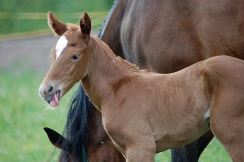 Bereits als am Vorabend die Harztröpfchen da hingen, wo sie schließlich auch hingehören, die Stute mehr zickte als sonst und nicht mehr wusste, ob sie fressen, saufen oder besser alles zusammen machen sollte, war uns klar, dass es nicht mehr lange dauern konnte.