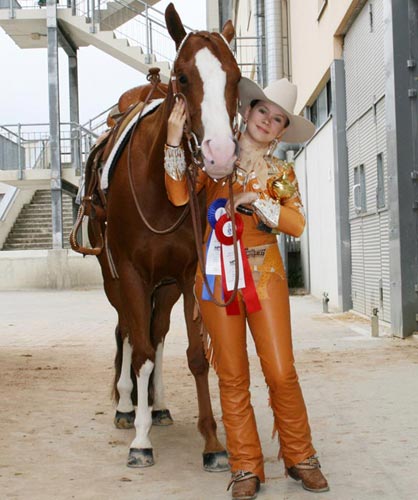 Mel und „Chilli“, so nennt sie ihren Traum von Fuchs, waren an Pfingsten richtig erfolgreich unterwegs. Sie starteten bei der Bayerischen Meisterschaft und belegten in der 2-fachen AQHA Show, die von Sylvia Katschker und Pierre Quellet gerichtet wurde, den 1. und 2. Platz.