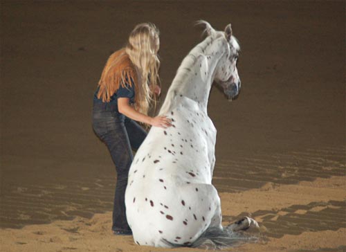 06-09-2007 REIN-O-MANIA 2007 - The Winner takes it all - Was für ein Finaltag! In der Rookie konnte der außerdeutsche Siegeszug noch einmal gebremst werden. Der dritte Platz ging an Valentin Kiefer auf Tari Little Jac. Den Reserve Champion Titel holte sich Karin Intveen mit Ses Outlaw Chic und der Sieg der Rookie Klasse ging an Luisa Schöppe auf CPR Poco But Buena. Auch in der darauf folgenden Limited Non Pro machten drei deutsche Starter die ersten Plätze unter sich aus. Sieger war Arne Barth auf ARC Sabrina Surprise vor Rolf Reinschmidt mit Dont Miss The Slide, gefolgt von Werner Art und Just A Wininic. In der anschließenden Intermediate Open taten sich die deutschen Starter wieder schwer. Das hochkarätig besetzte Starterfeld sah diesmal einen nichteuropäischen Gewinner, gefolgt von einem niederländischen, einem israelischen und zwei britischen Reitern. Der Sieg in dieser Klasse ging mit einem souveränen Ritt, dem man anmerkte, dass das Pferd noch für die am Sonntag anstehende Lawson Trophy geschont wurde, und einem Score von 217,5 an Jonathan Gauthier aus Canada, auf dem deutschen Weltreiterspielpferd Lil Ruf Cody im Besitz von Rolf und Monica Reinschmidt. Somit wird wenigstens die Pewter Trophy in Deutschland verbleiben, da Jonathan Gauthier mit seinen Pferden mittlerweile in Schweitenkirchen bei Pfaffenhofen located ist. Zweiter wurde Bo Kasberger aus den Niederlanden auf Candy For Teyon gefolgt von Kalifa Elad aus Israel mit CPR Poco But Buena. Nach einer kurzen Pause wurde dann das erste Highlight des Samstags gestartet. Nachdem die fünfzehn Finalisten des Derby Non Pro Finales von Frank Breitbart vorgestellt wurden, sollten die mittlerweile doch recht zahlreich erschienen Zuschauer ein spannendes Finale auf höchstem Niveau erleben. Für das Finale konnten sich Reiter aus Deutschland, Frankreich, Österreich, Belgien und Italien qualifizieren. Insbesondere durfte man auf das Duell zwischen Uwe Gerbig aus Deutschland und der am Freitag frisch gekürten REIN-O-MANIA-Futurity Non Pro Gewinnerin Cira Baeck aus Belgien gespannt sein. Bereits die ersten Starts zeigten, dass sich die Finalisten bewusst waren, dass es schwer werden würde sich in dem starken Starterfeld durchzusetzen, und so wurde von Beginn an mit viel Risiko geritten. Einen ersten deutlichen Fingerzeig in Richtung Sieganspruch setzte Michael Bruder aus Deutschland auf der Quarter Horse Stute Miss Top Tonic. Der Score von 213,5 sollte halten bis zum elften Starter. Mit einem beherzten Ritt setzte sich Andre Zschau auf A Shining BH mit einem Score von 214 an die Spitze. Mit dem übernächsten Starter kam es dann zum ersten Teil des erwarteten Showdowns. Uwe Gerbig auf RS Bon Ton Jac aus Deutschland war es anzumerken, dass er seinem Sieg beim Non Pro Derby der NRHA Germany einen weiteren Sieg folgen lassen wollte und so setzte er alles auf eine Karte. Mit einem furiosen Ritt konnte er auch verdient mit einem Score von 215 die Führung übernehmen. Cira Baeck wusste wohl, dass sie alles auf eine Karte setzen musste, um Gerbig den Sieg noch streitig zu machen, denn von Anfang an ging sie mit dem Topsail Whiz Sohn Whizashiningwalla BB hochkonzentriert und mit mächtigem Speed zu Werke. Nach tollen Spins, astreinen Zirkeln und tiefen, wie auf Schienen gezogenen, Stops verkündete der Sprecher unter dem anhaltenden Applaus der Zuschauer den neuen Highscore von 218,5 Punkten. Auch der letzte Starter Sven Bürig auf A Hollywood Star konnte dem nichts entgegensetzen und so war es amtlich Cira Baeck aus Belgien holte sich nach ihrem gestrigen Sieg in der REIN-O-MANIA-Futurity Non Pro auch den Championtitel im REIN-O-MANIA-Derby Non Pro mit einem Preisgeld von 1.886,37 Dollar. Zusätzlich erhielt sie noch eine Trophy, das Championbuckel und einen Championsattel von Tom Winter Saddlery. Nach Ihrem Gewinn am Freitag dürfte sich für die Belgierin die Reise nach Kreuth wohl mehr als gelohnt haben.