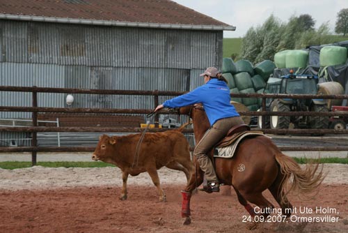 Ute HOLM ist trotz ihrer beeindruckende Erfolge u.a. Europameister und World Champion und Reserve World Champion in Mannschaft Cutting eine sehr zugängliche Person, die jedem Antwort und Rat gegeben hat.