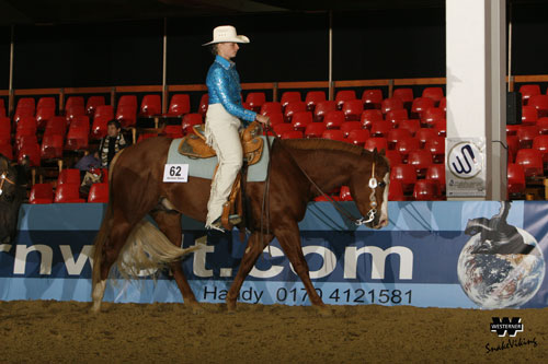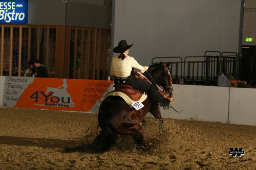 Anna Limmer gelang schließlich im Go eine echte Überraschung: Mit ihrem Hesa San Jo, der sie auf der German Open 2006 zum Deutschen Meistertitel der EWU im Senior Trail trug, legte sie einen starken Ritt hin und wurde von den Richtern einstimmig auf den ersten Rang gesetzt – 28 Platzierungspunkte bedeuteten das für sie. Das wäre ein genialer Coup, wenn ihr mit dem Hengst nach ihrem Erfolg im Trail im vergangenen Jahr nun auch der Sieg in der Senior Reining der EWU gelingen würde!