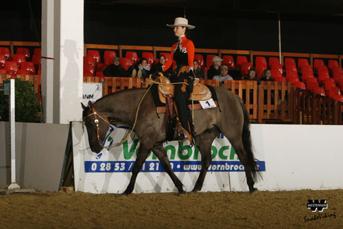 Einen Mitternachtsritt mussten die Pleasure-Reiter für den Vorlauf der Junior Western Pleasure absolvieren. Dies gelang Annett Lemaire mit Wee Lenas April Joke sowie Volker Laves auf CL Special Echo am besten, die beide 25 Platzierungspunkte von den Richtern gutgeschrieben bekamen.