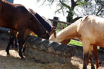 Auch die Strohqualität muss stimmen Ebenso kann zu kurz gehäckseltes, verschimmeltes oder verunreinigtes Heu und Stroh zu erheblichen Gesundheitsschäden führen. Doch auch bei qualitativ hochwertigem Rauhfutter ist die Staubbelastung für Pferde oft noch zu hoch. Zur Reduktion kann Heu gewässert werden. Hierzu wird das Rauhfutter ca. eine halbe Stunde vor der Fütterung in ein Wasserbad getaucht und anschließend auf einem Rost abgetropft. Neuere Untersuchungen zeigen, dass die zeitlich längere Wässerung keinen Vorteil bringt. Durch das Wasserbad wird der Mineralstoffgehalt des Rauhfutters reduziert, weshalb auf einen zusätzlichen Futterausgleich geachtet werden muss. Die Heu-Wässerung wird unumgänglich, wenn die Pferde schon eine chronische Atemwegserkrankung haben und sie ist in vielen Reitställen leider häufig schon Routine. Mit recht gutem Erfolg wird das Rauhfutter bei bereits chronisch erkrankten Pferden auch gegen Silage bester Qualität, Heucobs oder Heubriketts ersetzt. Die Ansprüche an die Qualität der Silage sind beim Pferd allerdings sehr hoch. Auch das Stroh muss sorgfältig auf Qualität geprüft werden, schließlich wird es von den Pferden ja auch gefressen. Bei Pferden mit chronischer Bronchitis empfiehlt sich hier eine Umstellung auf eine andere Einstreu, zum Beispiel auf Holzabfälle oder auf das fast staubfreie Flachs oder Hanf. Für kleinere Bestände kann Kurzstroh Verwendung finden, dass von den Herstellern abgepackt, getrocknet und entstaubt angeboten wird. Verbrauch und Mistmenge lassen sich mit dieser Variante zugleich um gut ein Drittel reduzieren, in größeren Ställen lohnt sich auch die Anschaffung einer eigenen Häckselmaschine. Hanfeinstreu ist weitgehend staubfrei, hat eine sehr hohe Saugfähigkeit, ist gut geruchsbindend und erbringt ein erheblich reduziertes Mistvolumen. Auch Flachs bzw. Leinenstroh reduziert den Mistanfall in der Pferdehaltung bis zu 75 Prozent und ist sehr gut kompostierbar. Eine eher kostenintensive Alternative zu Stroh, die sich aber vor allem in kleineren Ställen anbietet, bei bereits erkrankten Pferden zudem meist unumgänglich wird. Bei den Holzabfällen sollte möglichst unbehandeltes Weichholz eingesetzt werden. Sehr schwer erkrankte Pferde und solche mit Staub-Allergien müssen auf einen weichen Bodenbelag (Gummibelag) ohne Einstreu umgestellt werden.