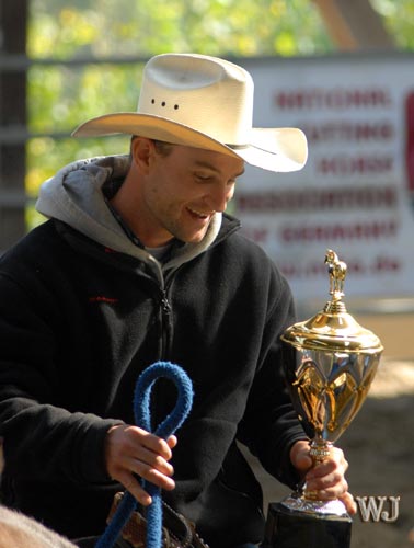 Ebenso durfte sich Brian Turnbull über einen Special Award der NCHA freuen. Der in Deutschland mittlerweile weit über ein Jahrzehnt ansässige Kanadier hat die NCHA und den Cuttingsport über viele Jahre unterstützt. Seit 2007 bietet der „Altmeister im Cutting“ auf seiner Ranch in der Oberpfalz nun auch das Training von Cutting und Cowhorse Pferden an. Für Paul Derrez sollte es nach der Verleihung des „Sportsman of the Year“ noch besser kommen. Mit einem Score von 144 Punkten gewann der Niederländer auf SMARTEST NINA PEP die NCHA DM Cutting Open. Deutscher Vizemeister und bester Deutscher wurde mit 141 Punkten Sebastian Hünnekens mit GM Freckles. Der Fuchshengst steht im Besitz von Dietmar Meyn und war bereits in Aachen weit vorne platziert. Platz 3 ging an den Schweden Göran Lindstrom mit Solanos Little Tivio.