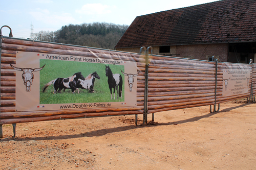 Panels werden somit als ideale Werbeträger genutzt, Pferde vor Wind und Wetter geschützt, Dahinterliegendes verborgen