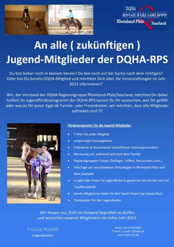 Aufruf der DQHA RPS an alle Jugend Mitglieder und solche, die es noch werden wollen